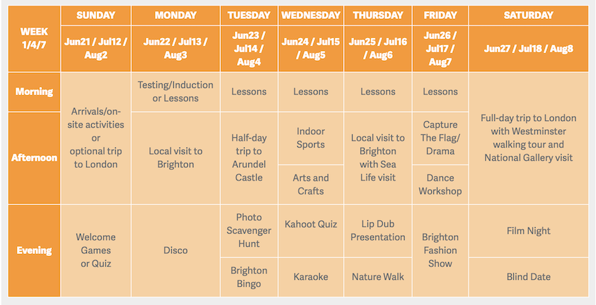 Grâce à un programme d'activités variées, nos participants visiteront le célèbre "Pier" de Brighton, le Royal Pavilion, ou encore le Sea Life Centre, les pittoresques Lanes et bien plus encore.